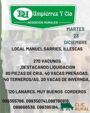 | Vaquillonas | U$S 2.56 | U$S 4.91 |